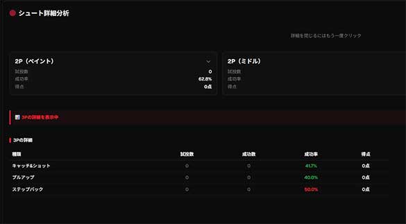 シュートの種類やオフェンスの傾向、コート上の位置ごとの成功率まで“数値” で可視化します。